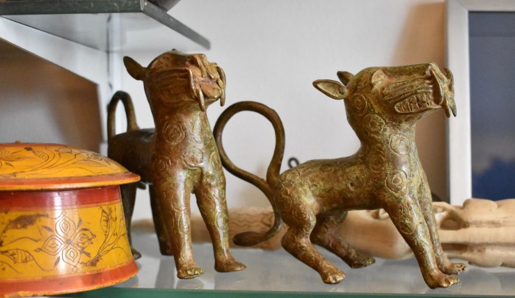 La collection d’objets d’art et d’artisanat anciens (provenance : Asie et Afrique) contient : des masques, des figurines, des marionnettes, des boites, des bouddhas, des tableaux, des instruments de musique et bien d’autres.