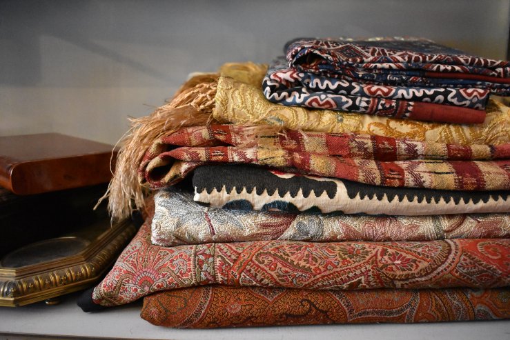 Les textiles en vente chez Agoraï Antiquités sont des tissus de fabrication artisanale anciens (provenance : Asie et Afrique) ainsi qu’une collection de châles cachemires français du XIXe siècle.